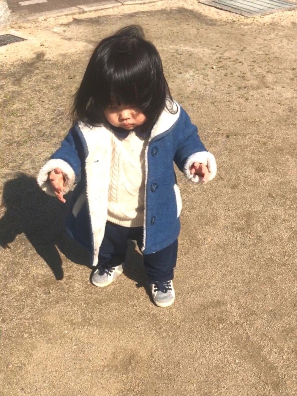 初めて立ちpicです✨ 汚れても洗える服でコーデ😊 ついにあんよを始めたので、初めて公園に連れて行きました❤️ 案の定泥んこまみれ🤣笑