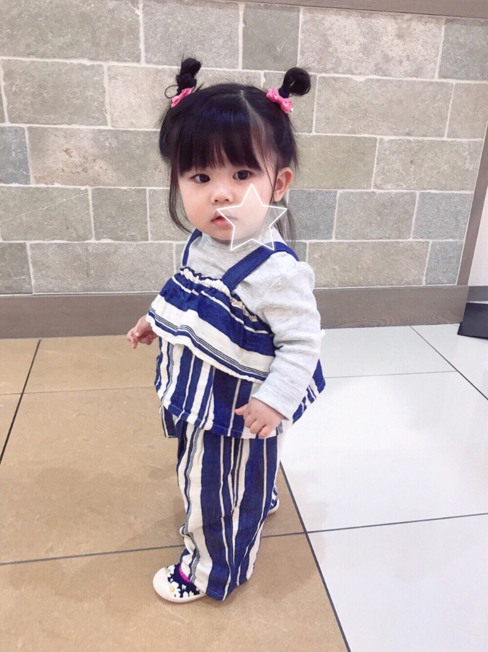 アプレのセットアップコーデです🌷 過去にもUPしてますがせっかく着たので再び🙏 我が家のクローゼットはストライプでいっぱいです❤️ 先日バァバと3人でとんかつ屋さんに行きました🍴 チキンカツ定食を頼んだけど… 8割すーさんに食べられました😱 母に残されたカツはひと切れ… 大盛りキャベツをメインに食べました😭 次回からお子様ランチの注文を検討します✋