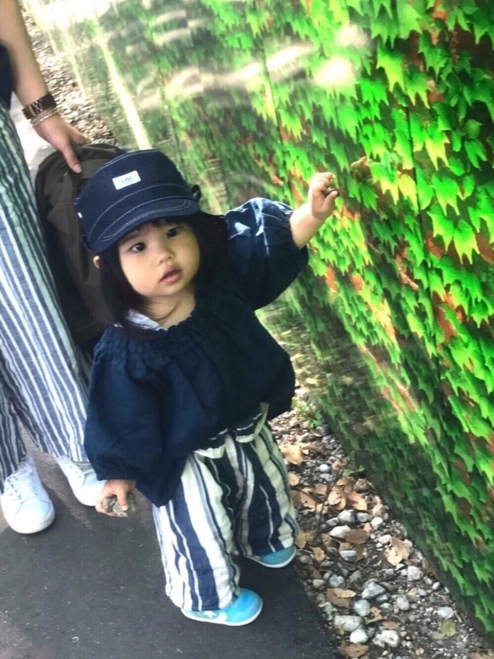 手にたくさんの石コロを持っているすーさんです😆 GW初日のお出かけコーデ💐 ティピーのオフショルダートップスはシャーリングとシルエットが可愛い❤️ 母がカンカン帽だったのですーさんにもカンカン帽被せたらギャン泣きされ…… いつものLeeキャップです🙊 ストライプのパンツ オフショルダーブラウス で、ちゃっかり親子コーデしてます🍏🍎 最近、服の好みが出てきたすーさん😵 すーさんの履きたくない靴を差し出すと首を振って嫌がるし😤 好きじゃない服だと踏ん反り返って泣きながら拒絶😫 その日の気分で選んでる物もあれば、スカートやキツめのパンツはいつでも断固拒否🙈 だんだん着てくれないお洋服が増えてきました😭 これはみんなが通る道なのかな❓