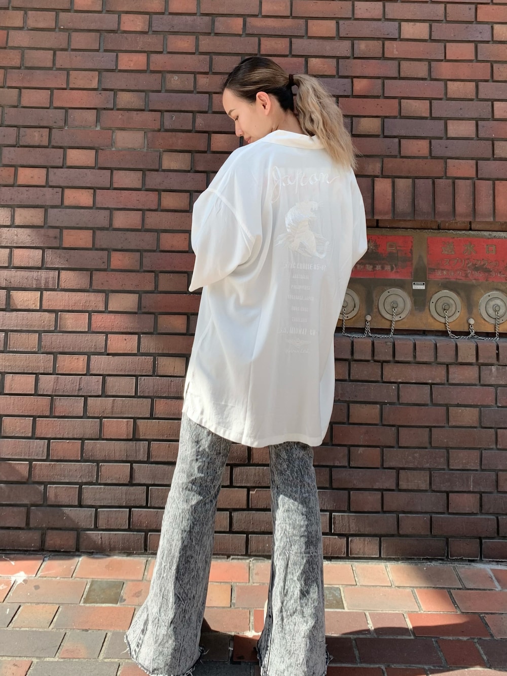 メンズシャツをオーバーサイズで🌞 同系色の刺繍でさりげない虎🐯