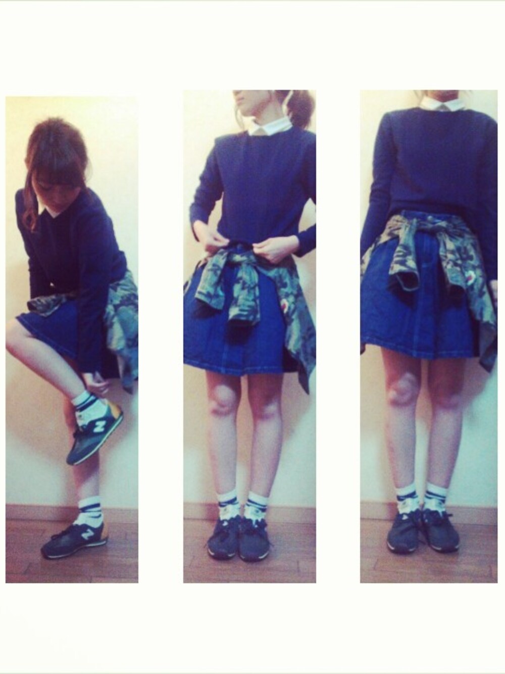 スカート mystic スニーカー newbalance トップス chico ラインソックス ABCマート あおじみがきえないー