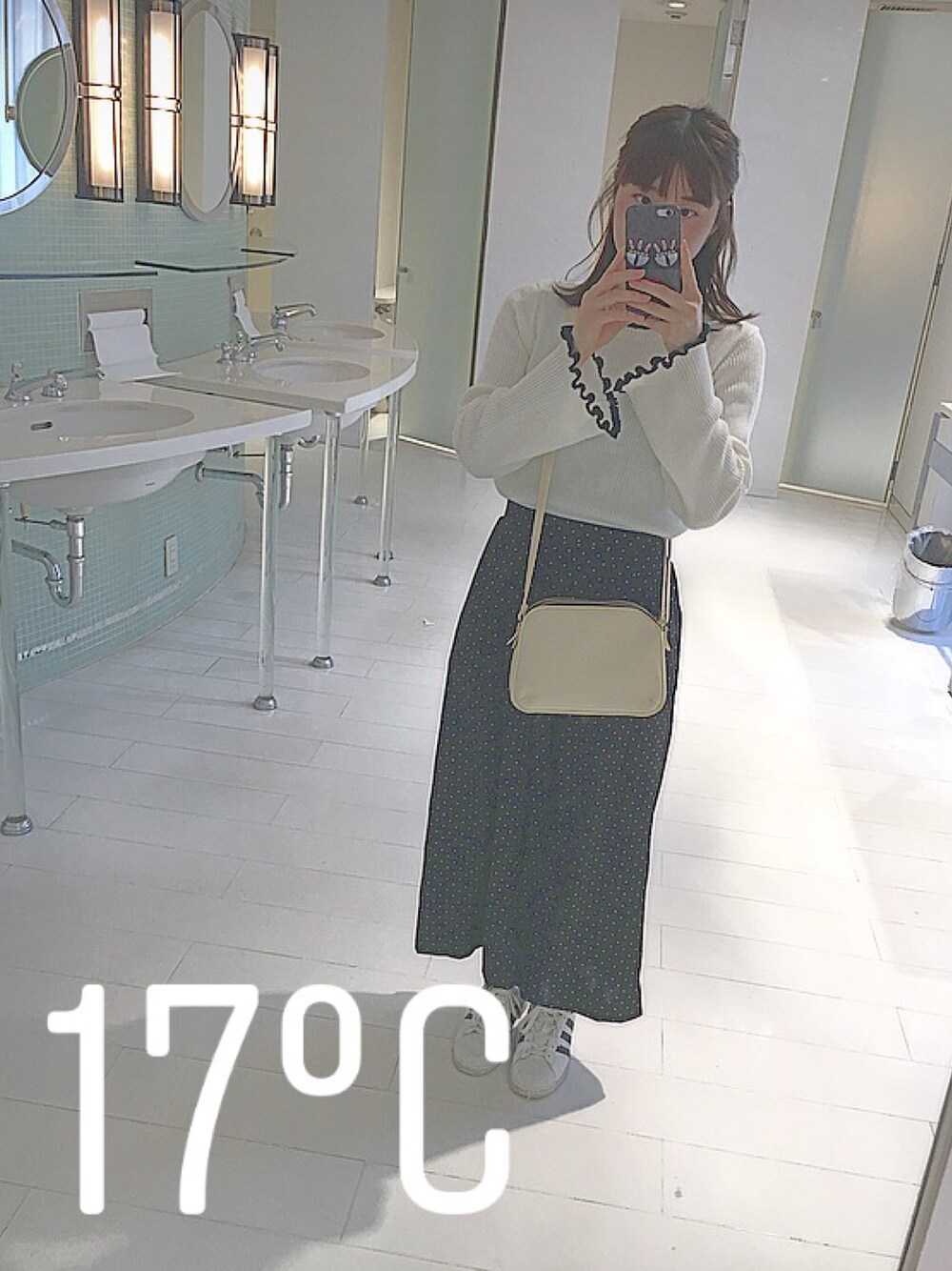 お出かけコーデ 🐻🍁 車移動 だった ので アウターが 無くても これだけで 大丈夫 でした◎ トップスは ニット生地です ☺︎