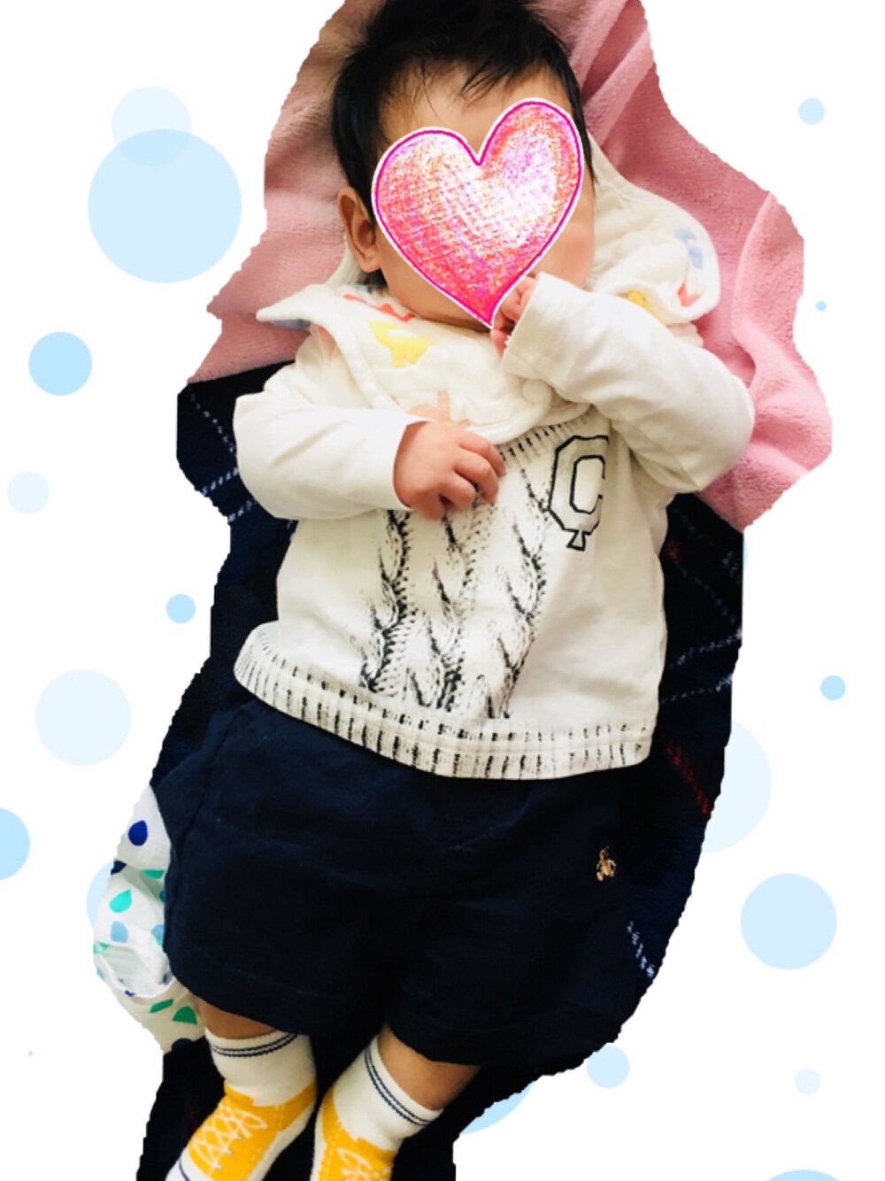 生後3ヶ月の息子コーデ。 今日はコムサフォセットのトップスにbabyGAPのハーフパンツ コンビミニの靴下です(^^) 風が強いですねー! 車が砂まみれです。。