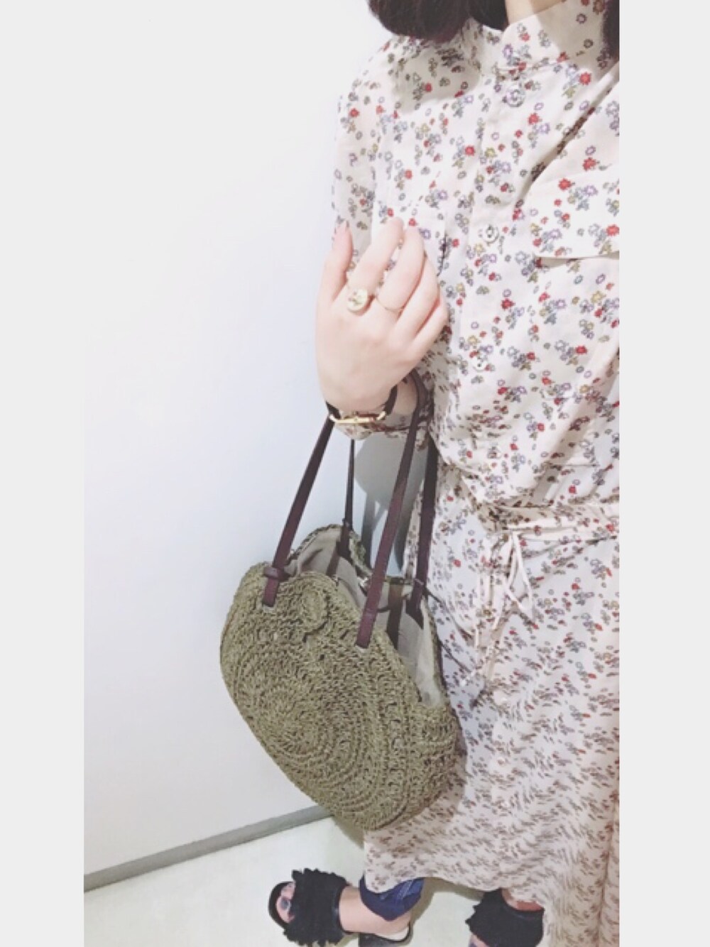 n a ⑅のワンピース「シフォンプリントワンピース(7分袖)」を使ったコーディネート