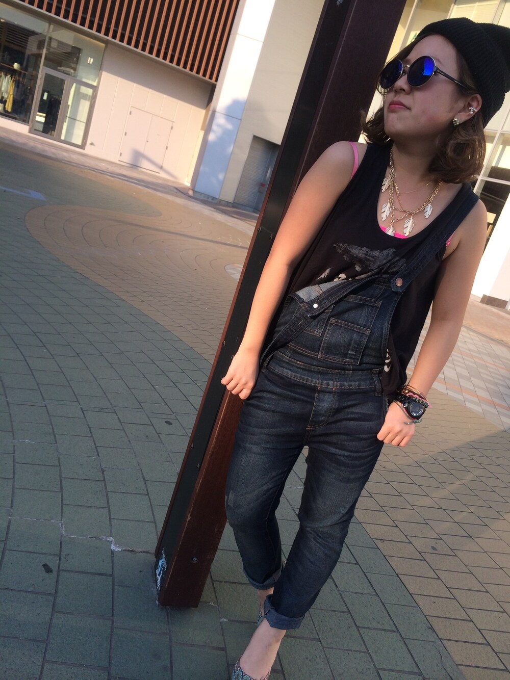 サロペットをヒールサンダルで合わせて カジュアルダウン♫
