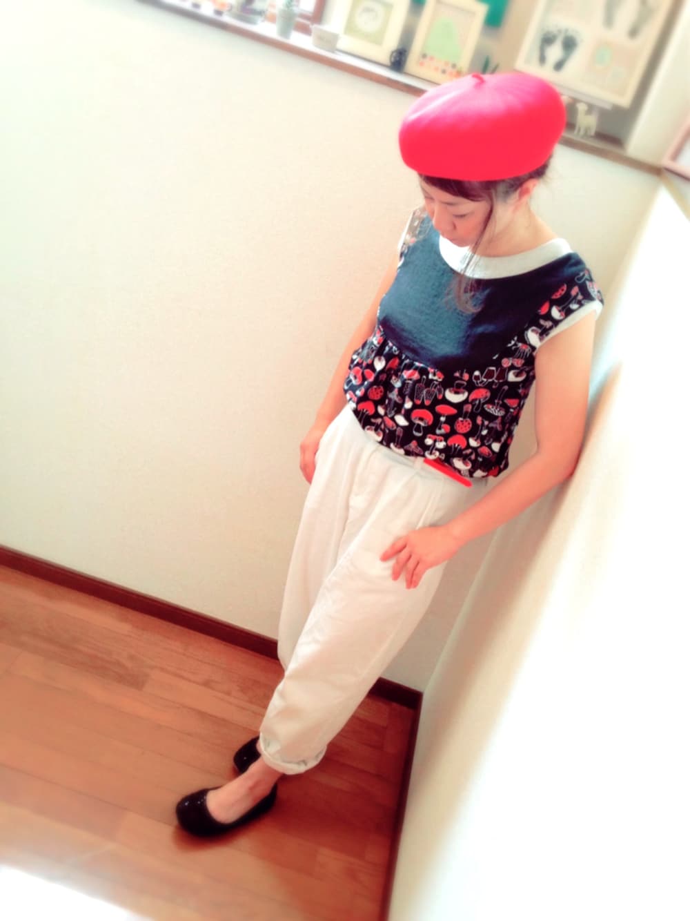 リサイクルショップで激安だったので ラッキー!!✨ と、即買いしたタンクトップ♡ きのこ柄につい目がいっちゃうわー ムチャチャのきのこ柄が好き。 ベルトは写真で見えにくいけれど 赤いのしてます♪