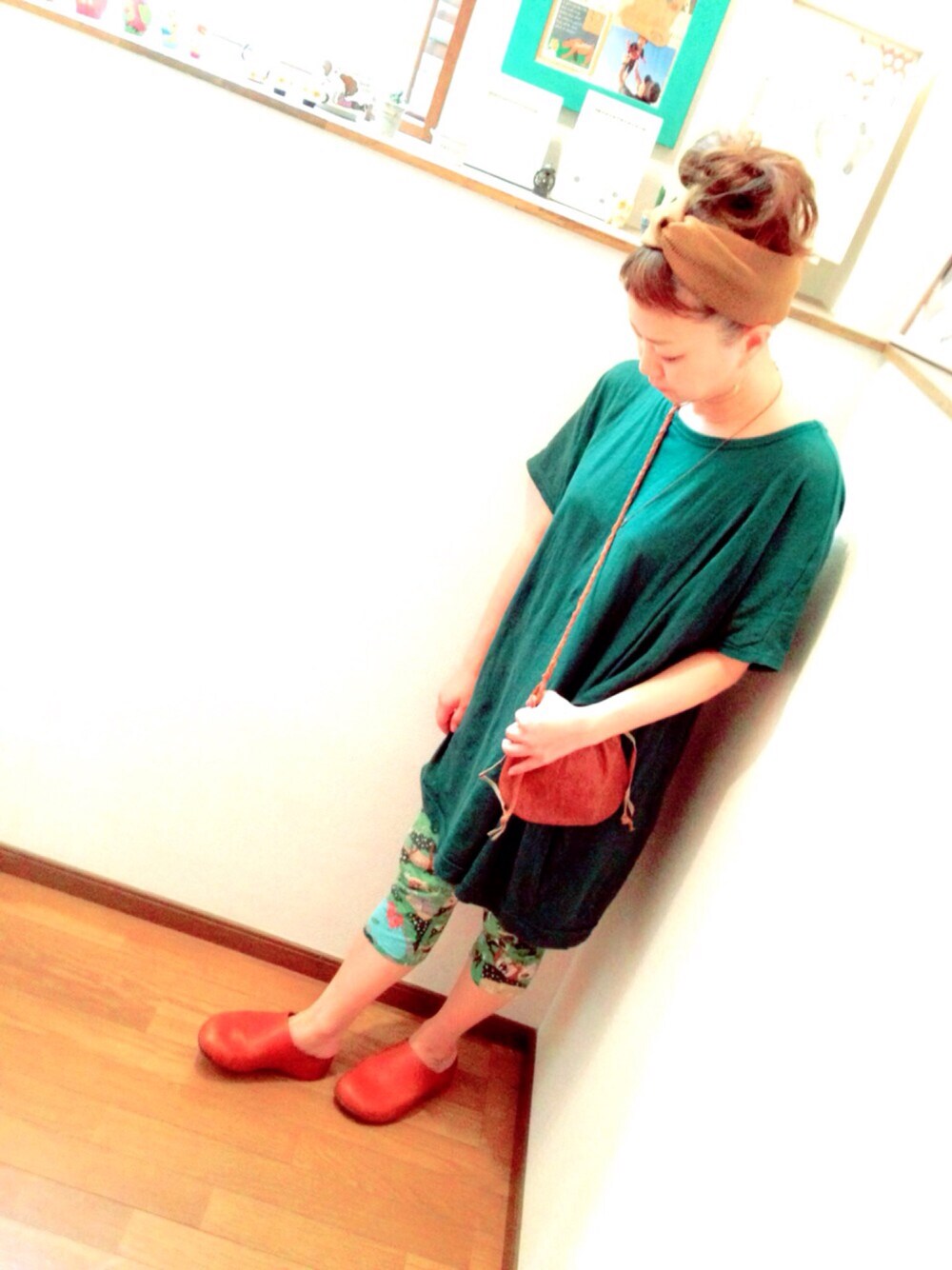 今日の気分は緑。 部屋着みたいになりそうな危ういコーデですが(・・;) なんとか小物で誤魔化せていると思い込もう(無理矢理)