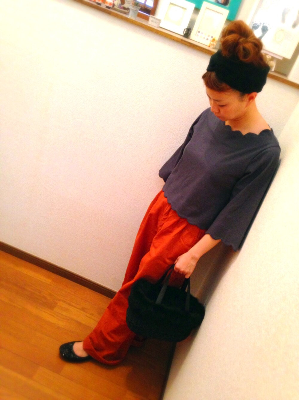 …あれ?このトップスの色、深いグリーンなのにグレーにしか写らない…謎。 ちなみに カゴバッグは凄く綺麗な状態なのに リサイクルショップで400円でした♡ 藤カゴは自分で作るくらい大好きなので 秋冬もファー入れたりして使うのが好きなんです♪ 最近自分で作る気力がなくなってたけどそろそろ再開しようかな〜