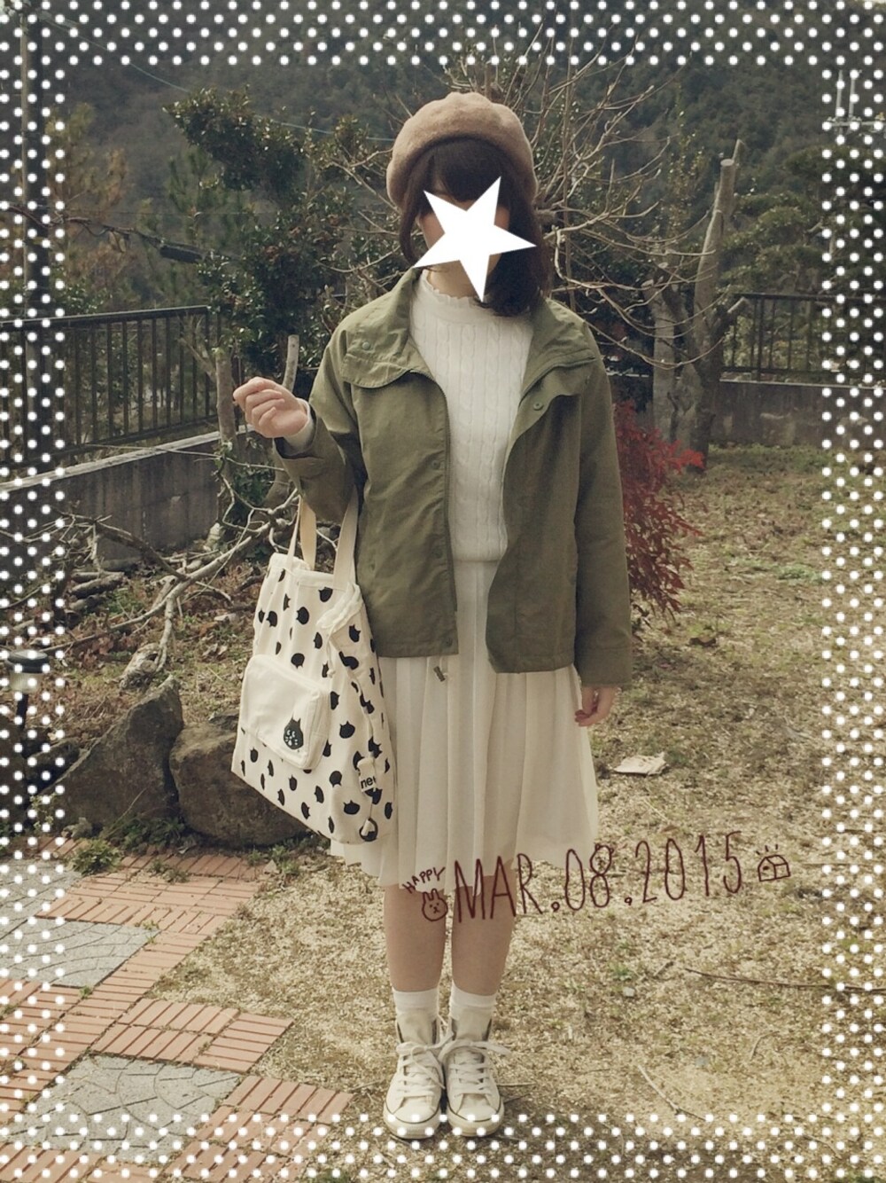 アウター:LOWRYSFARM ニット:UNIQLO スカート:JEANASIS ソックス:靴下屋 スニーカー:CONVERSE ベレー帽:LEPSIM LOWRYS FARM きょうは MAMORU MIYANO LIVE TOUR 2015 AMAZING! 大阪公演に行ってきます◎