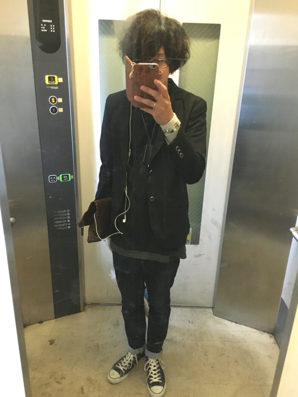 雨ですねぇ。 マジで天パの大敵!梅雨は早く終わって欲しい.....(笑) なんか寒かったので好きなワイドロングTシャツにジャケットはおりました。 あとはクロシェットを手に入れたので付けてます。いい!クロシェットいい!