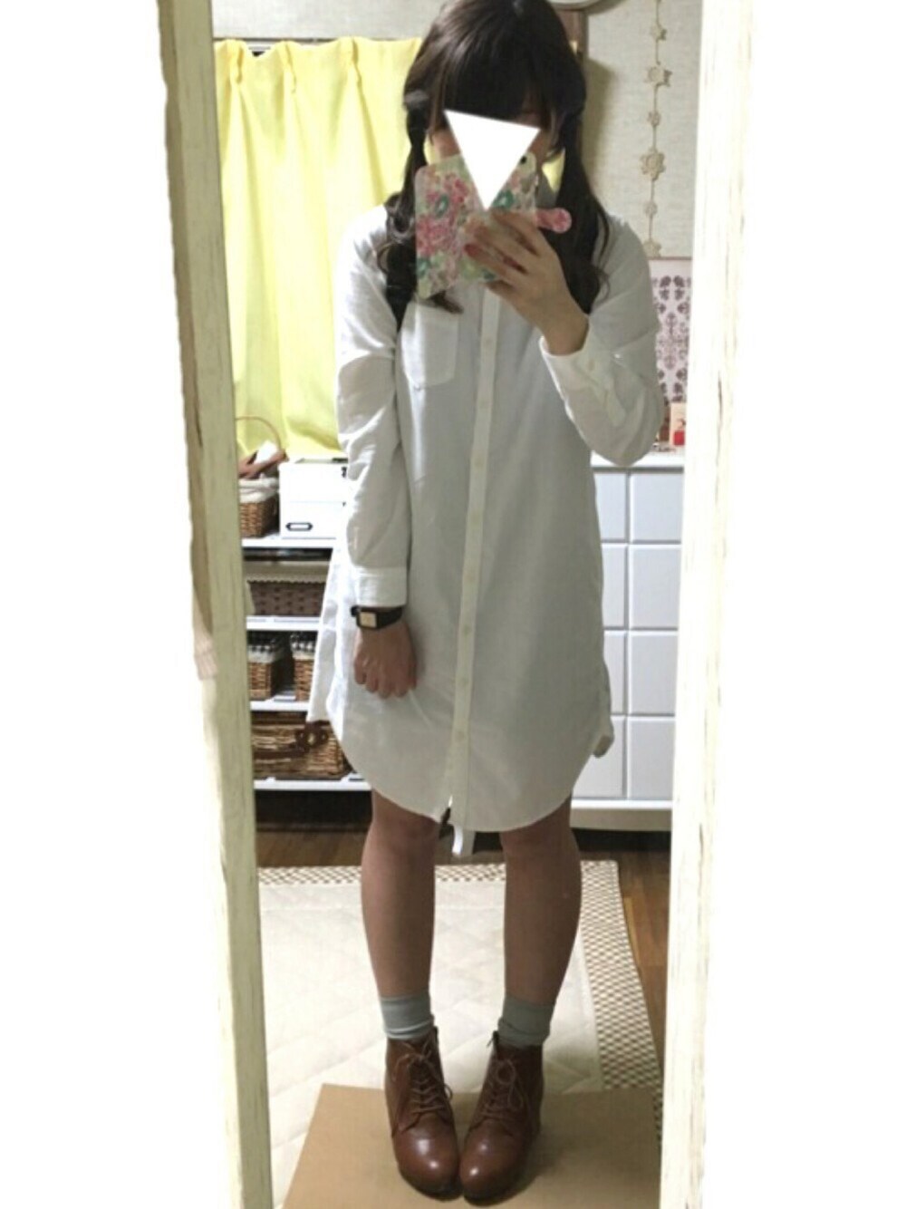白シャツで春らしく…☺️🌸 それにしても足が短すぎて悲しくなる😭😭😭