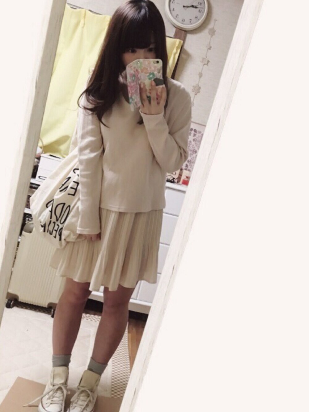 撮影するのが夜なのでなんだか暗い…😢 そして画質わるい…😭 そして足みじかい…😭😭😭 白っぽいけどトップスはピンクベージュです♪ 春服はなんだか気分が上がりますね☺️🍀 はやくお花見したいなぁ〜🙈🌸