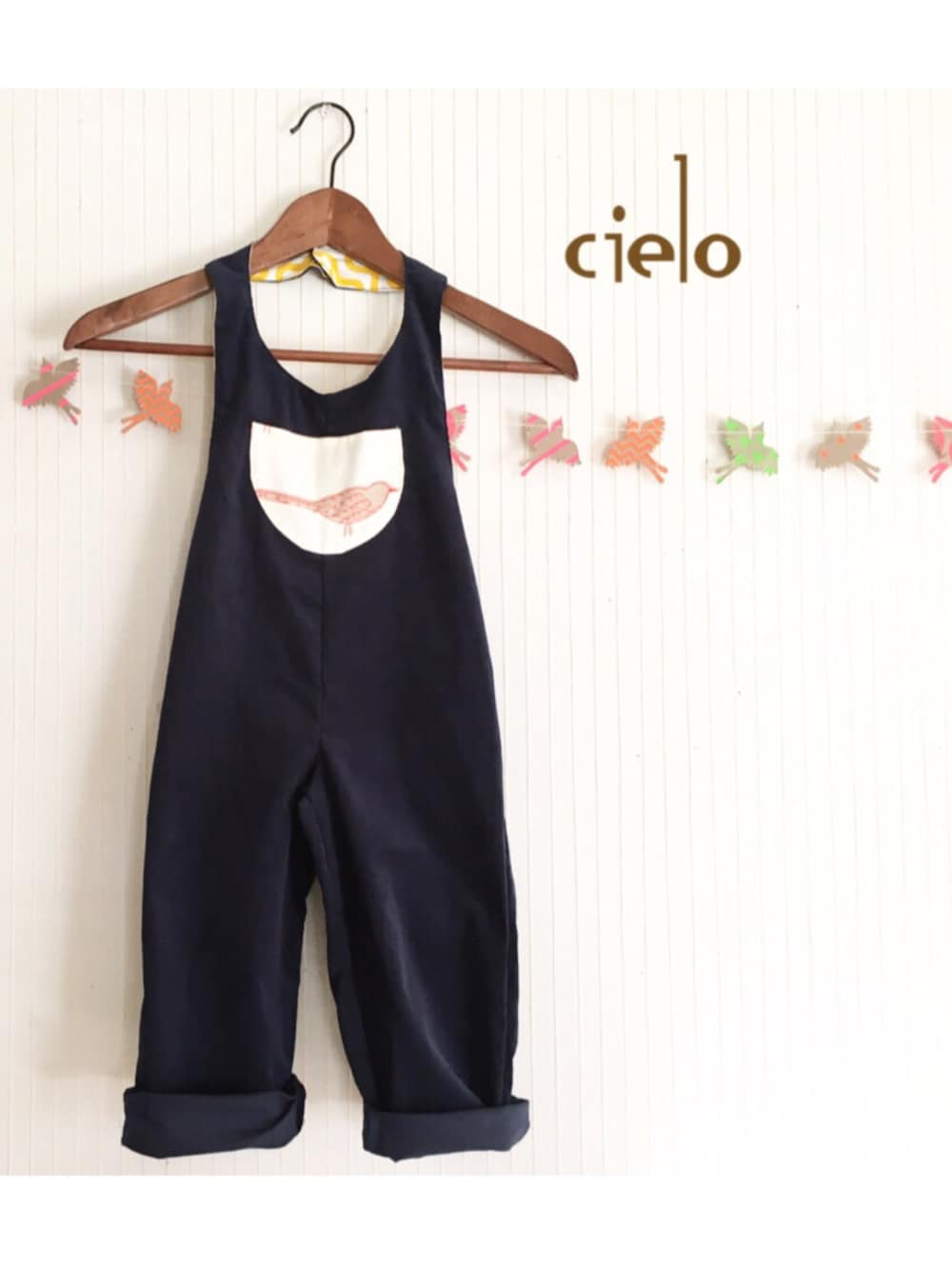 ✴︎minneで販売中✴︎ 秋冬素材のネイビーのコーデュロイ生地を使ったサロペット。 鳥さんイラストののポケット付。 サイズ:90〜100くらい CieloオリジナルデザインをUraraPatternさんにパターンをお願いして作りました♪ 型紙はこちらから購入できます↓ http://minne.com/items/902786 ママ目線から着せやすさと長い間着れるデザインを考えました! 着せやすいパンツタイプで、首後ろのスナップボタンをとめるだけなので重ね着していてもオムツ替えができます。 背中がゴムで、裾はロールアップして長さが調節出来るので長い間着て頂けます。