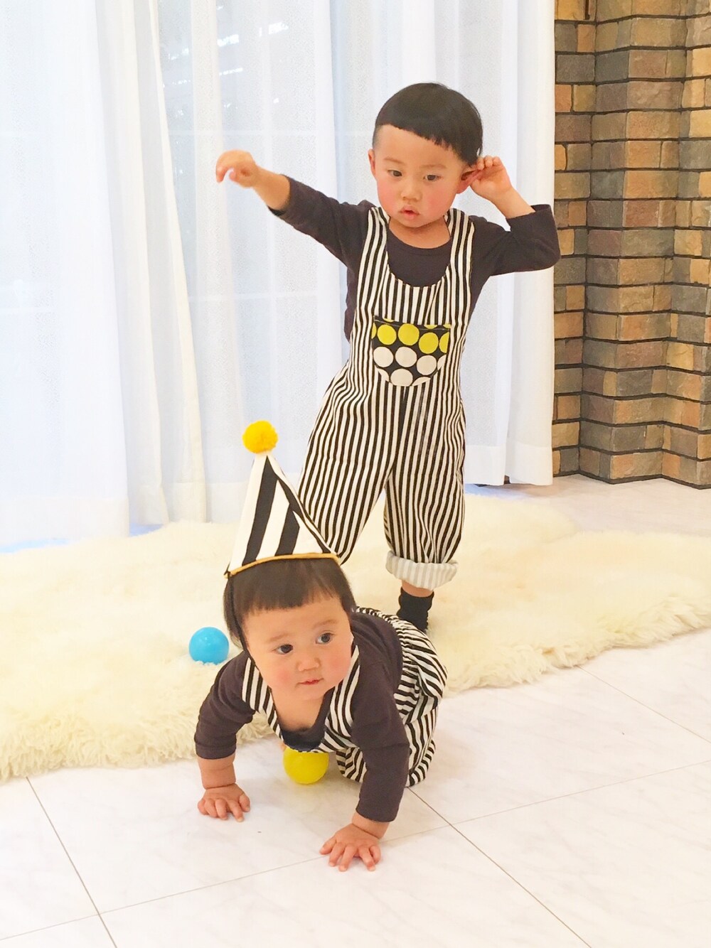 ✴︎minneで販売中✴︎ 細いストライプの生地で制作したサロペットです! ママ目線から着せやすさと長い間着れるデザインを考えました! サイズは70〜80【¥2500】 90〜100【¥2700】