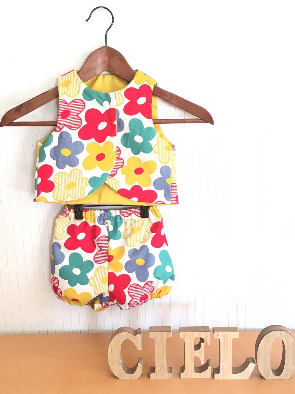 ✴︎minneで販売中✴︎ お花シリーズ、minneで沢山UPしました♡♡ セットアップで着ていただいても可愛いです。 サイズは大体、80cm〜90cmくらいです。 他にもガーランドやリバーシブル帽子なども制作しました!