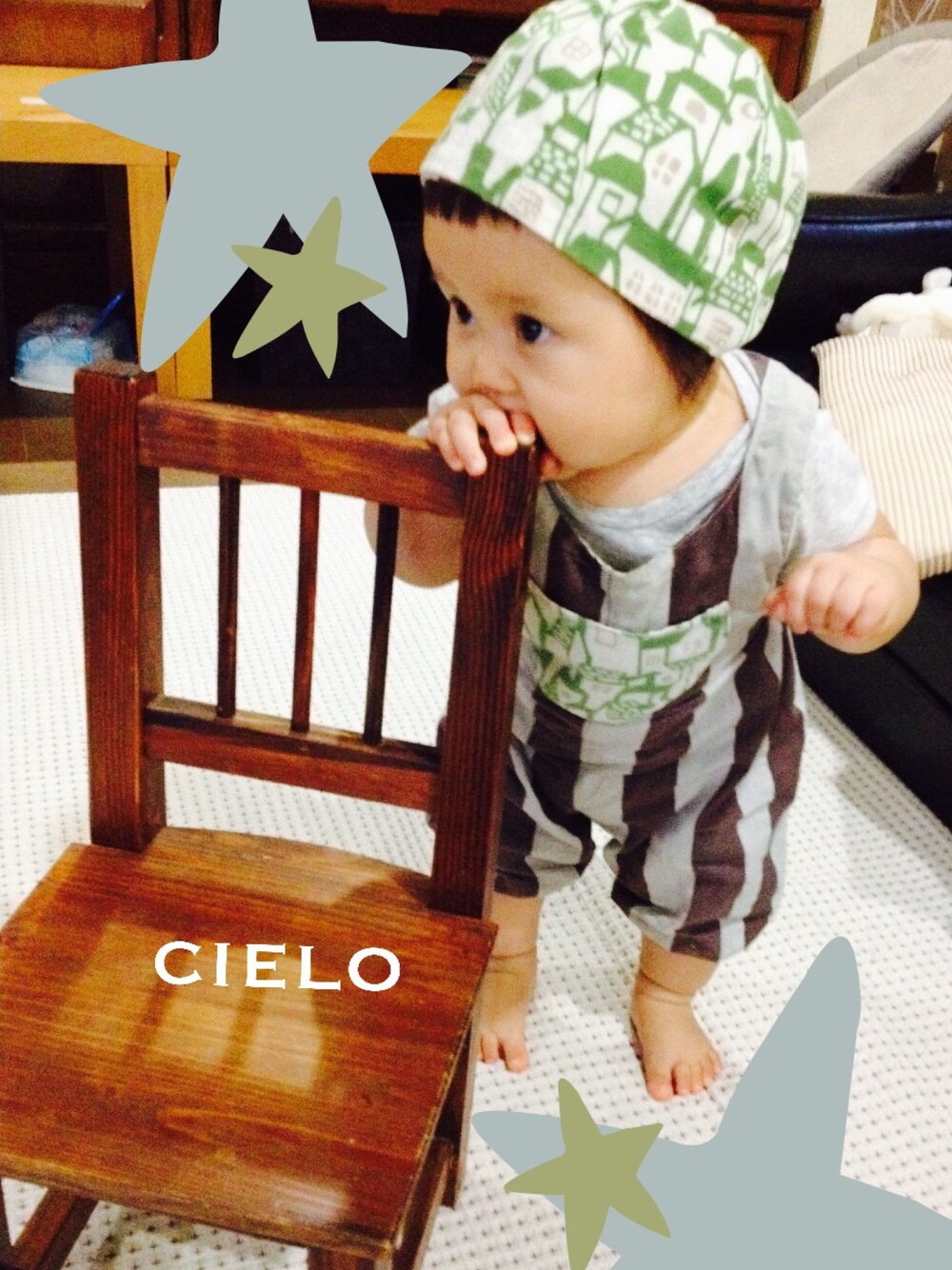 ハンドメイドのサロペット☁︎* ポケットの生地とおそろいの帽子も作りました♪