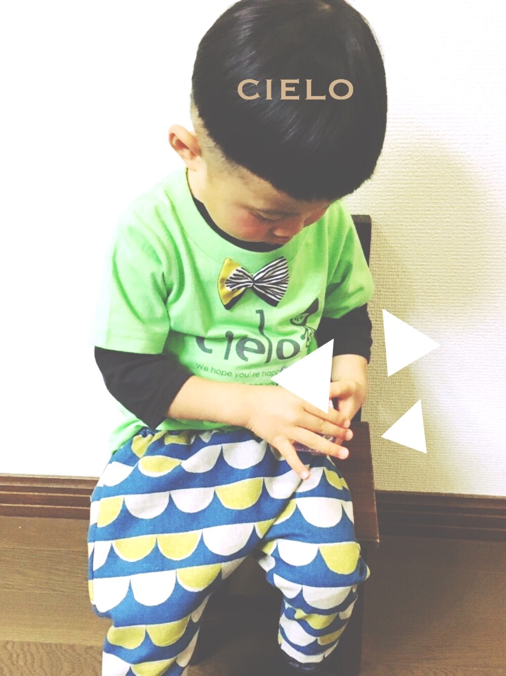 蝶ネクタイ付きcieloオリジナルTシャツと新作のサルエルパンツ☁︎**‥ サルエルは即日完売しましたがサロペットやかぼちゃパンツetcいろいろなアイテムを作りましたのでぜひminneをご覧下さい♪
