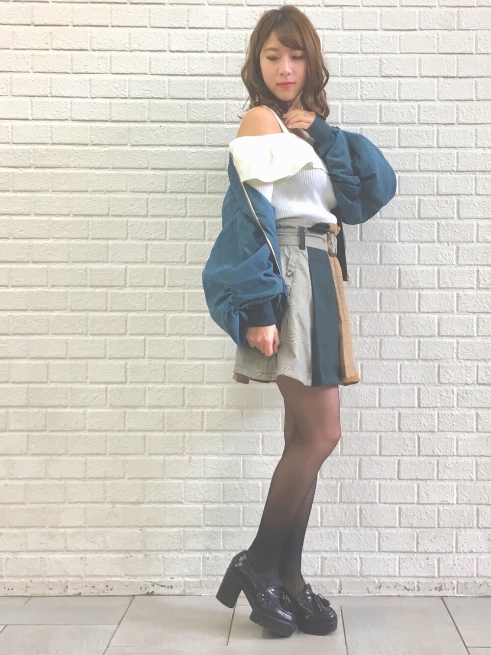 レディアゼルの新作コーデです🌈 大人気のスカートはハイウエストなので 足がとっても綺麗に✌️ 袖ボリュームのMA-1もあわせてシルエットかわいく着ました❤︎