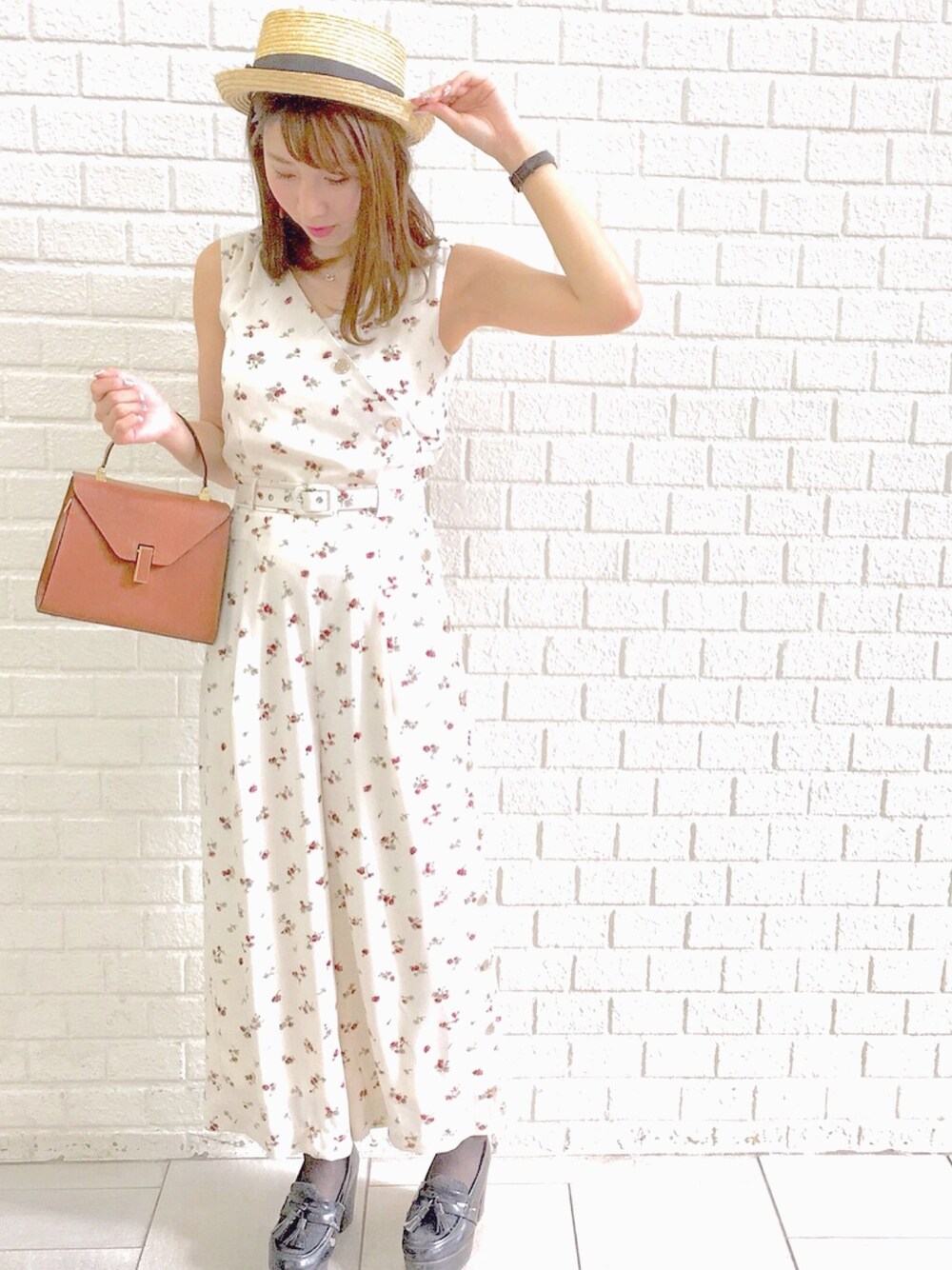 レディアゼルのオールインワンは 小花柄なので可愛いけど落ち着いてます❤︎ ウエストの位置高めだから すごく足長効果もありますよ😯 これだけだと寒いので今の時期だと Gジャンを合わせても🙆♀️💓 夏まで着れるアイテムです🌼