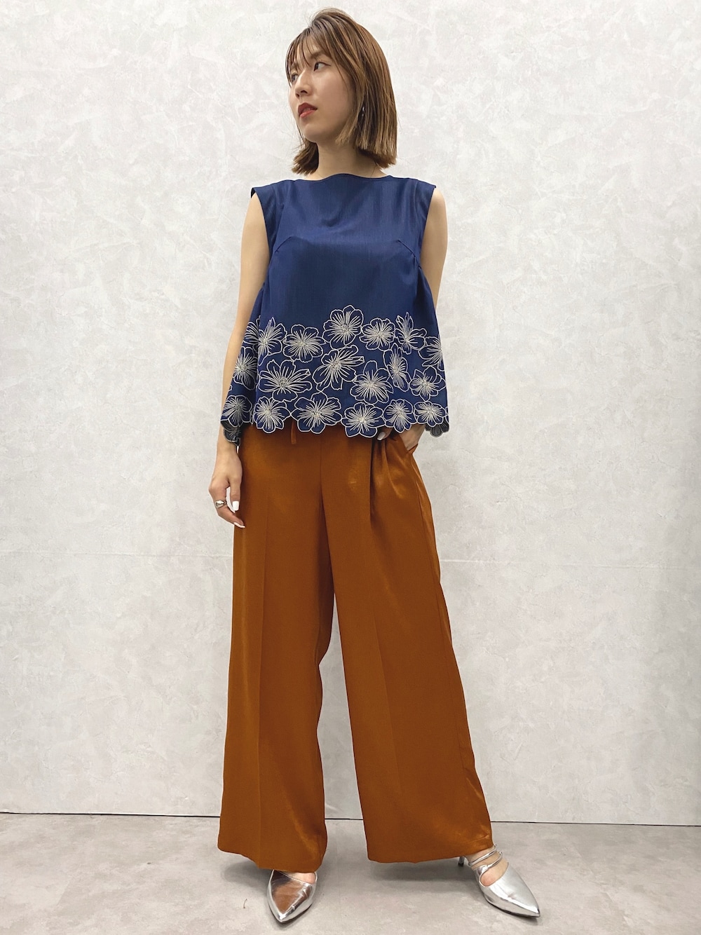 chicoのシャツ/ブラウス「ダンガリーフラワー刺繍ノースリーブブラウス」を使ったコーディネート