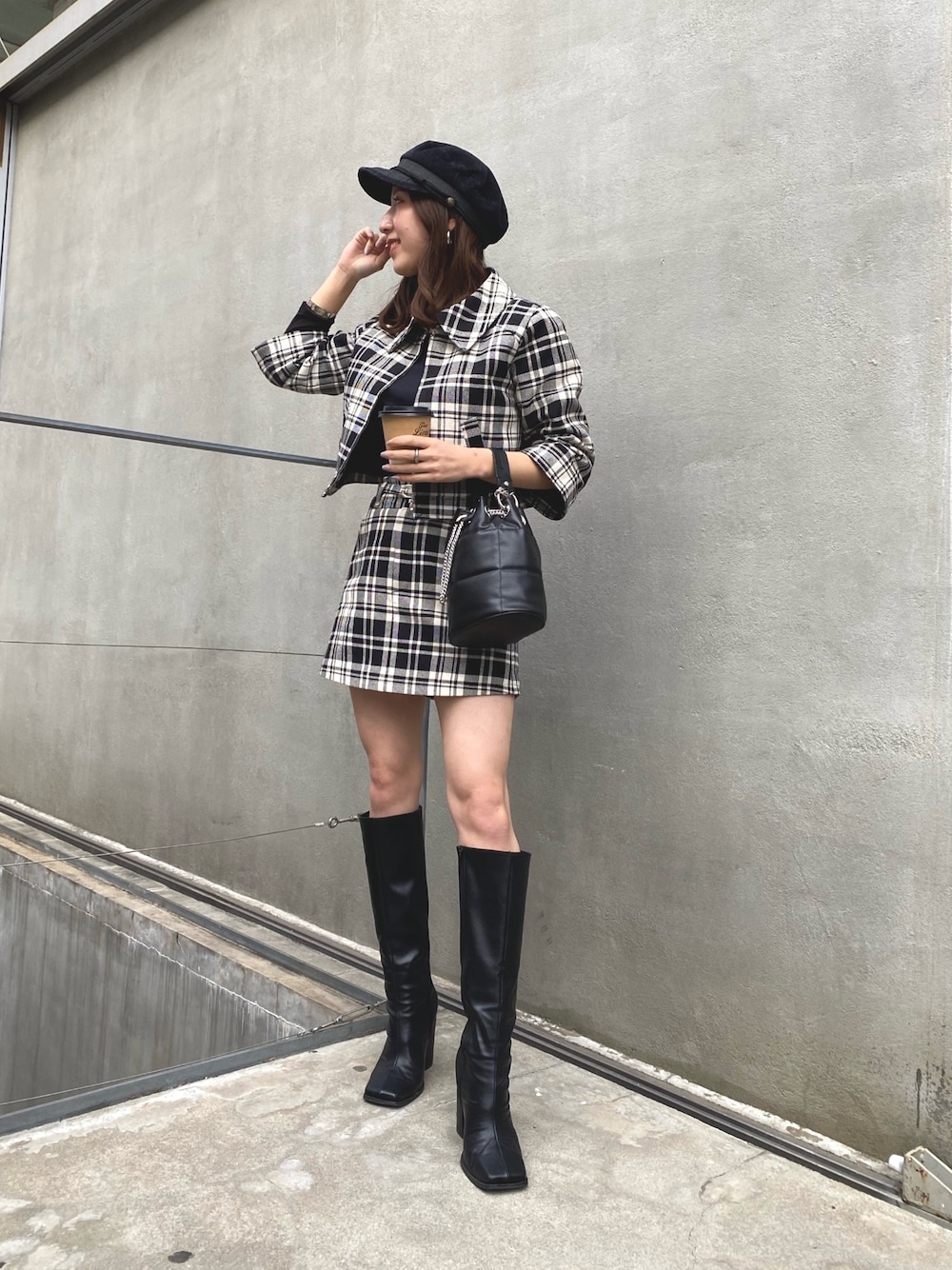 ミニ丈にロングブーツはお気に入りのスタイルです🖤 instagram @chiko_sugawara