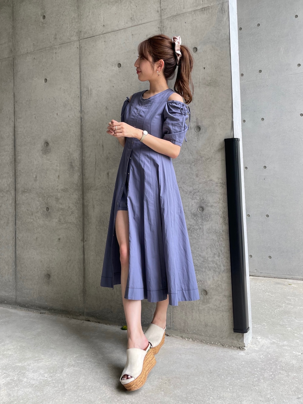 足元の肌見せと、オフショルデザインで 女性らしくみえるワンピース。 夏のお出かけコーデにぴったりなデザインです。 instagram @chiko_sugawara