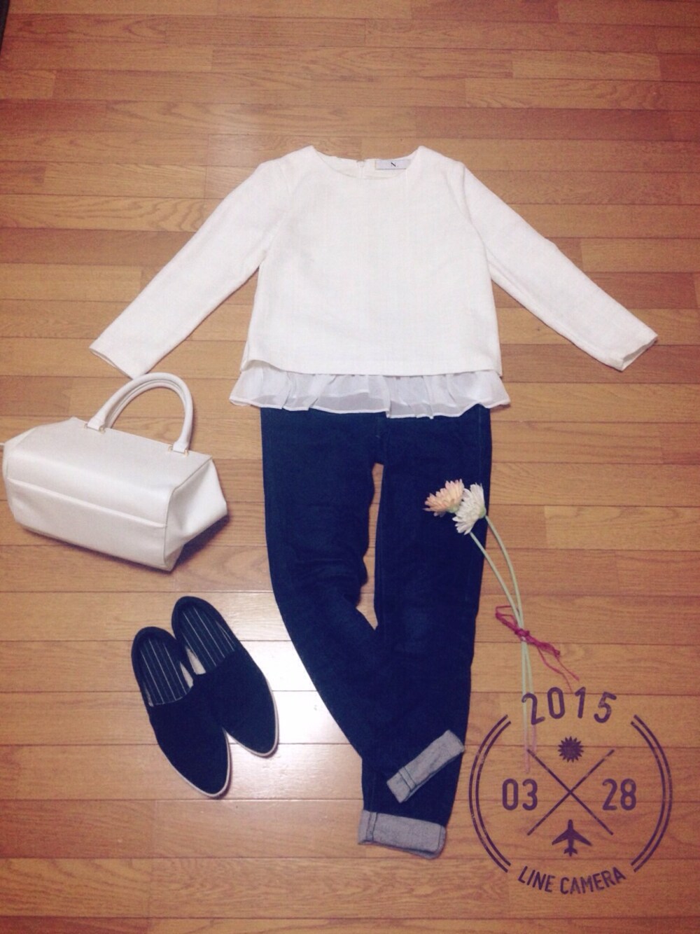 Tops•••••••••N. natural beauty basic Bottoms••••UNIQLO Bag••••••••••SM2 Shoes•••••••cheek simple look with gold accessories. とにかくシンプルに💎 これにだてめをかけて出かけたい☻