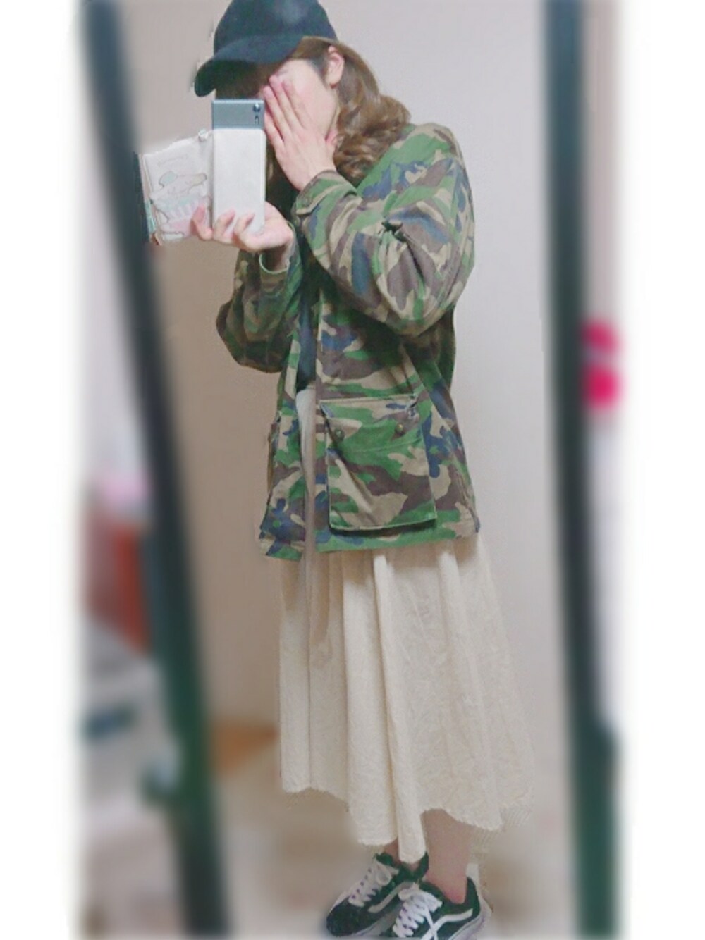 無地揃いだったのでカモフラ投入。 キャップはコーデュロイ素材で 何気にトレンド意識👏( ˘ω˘ ) 足元は合わせやすさ抜群のVANS♥