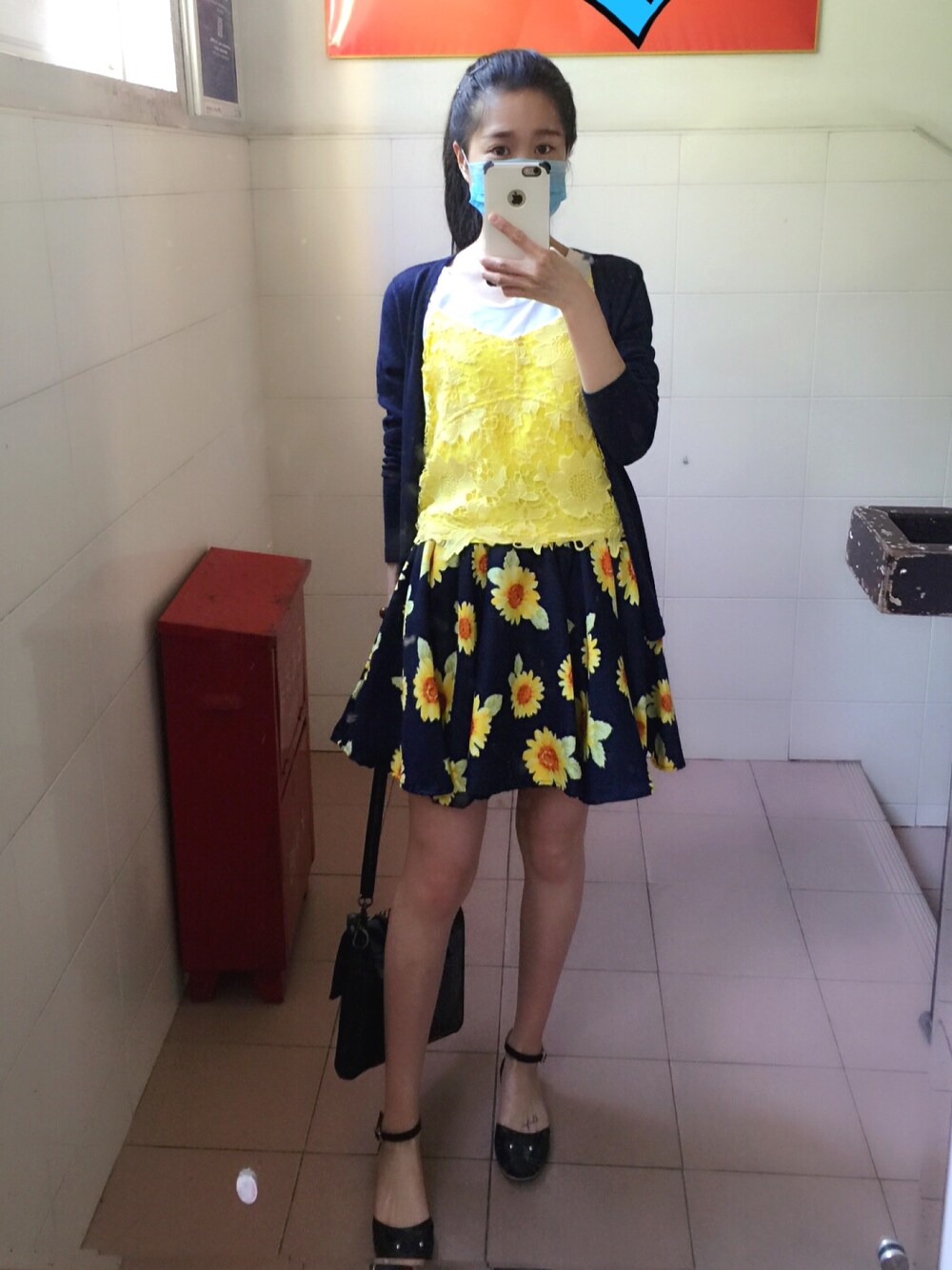 昨天的搭配,17-30度,阳光很耀眼,早晚温度较低,所以还是穿着了藏蓝色针织开衫,穿的太阳花藏蓝色半身裙(高腰摆裙),白T配了同色系的亮黄色水溶花吊带,室内可把外套脱下,整体裙子虽然很花,但是颜色会比较和谐,体感温度。早晚略冷,中午略热😂