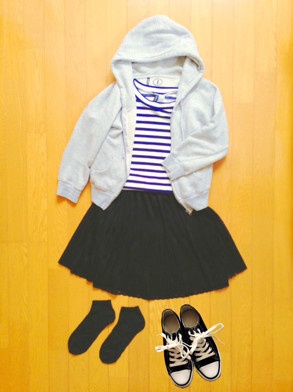 ブラック系のスニーカー、ブラック系のアナログ腕時計を着用したレディースの春コーディネートの1枚目の写真