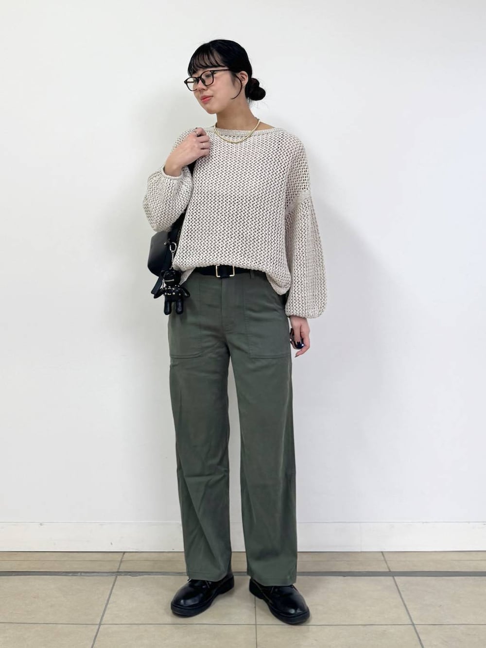 こんにちは🌞 いつもご覧いただきありがとうございます! トップス: ペーパーヤーンと綿麻を合わせた、軽やかなメッシュ編みのニットプルオーバー🧶✨ ざっくりとした透け感とゆったりシルエットで、インナー次第で幅広い着こなしが楽しめます🤍 ベージュのワントーンやブラックのワイドパンツ合わせで、上品にもモードにも着回せる一枚です🌿 パンツ: 女性らしいラインと上質素材にこだわった、きれいめに履けるミリタリーパンツ👖 程よい厚みのある素材で春先まで活躍し、後ろウエストゴム&アジャストベルト付きで快適な履き心地です◎ カジュアルにもきれいめにも合わせやすく、足元次第で幅広いスタイリングが楽しめます👠 右下の♡マークを押すと後から見返せます💡 下の使用アイテムからぜひチェックしてみてくださいね♪ ▶︎Instagram インスタでもコーデ更新中✨ フォロー&いいねお待ちしております☺️