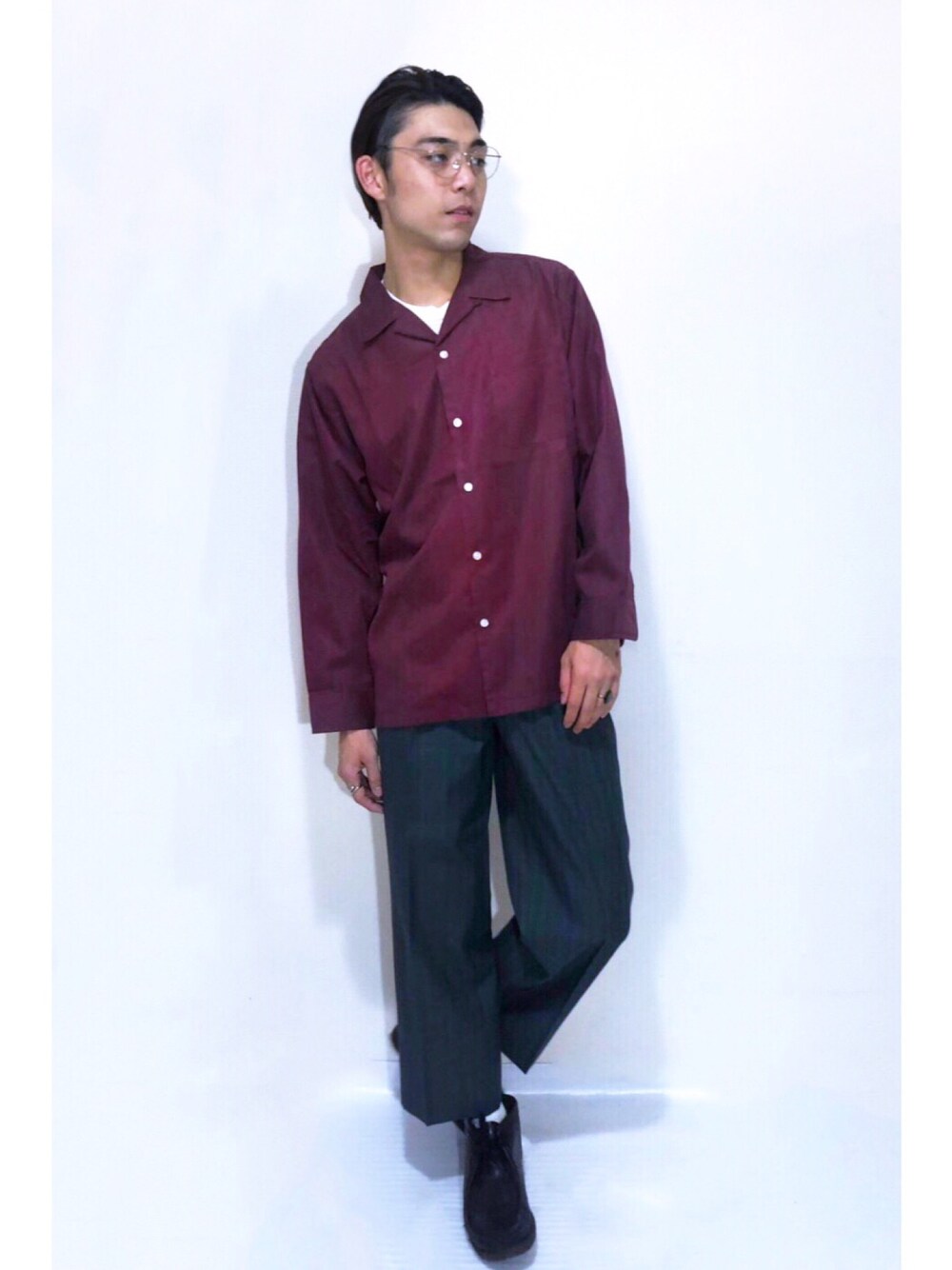 シンプル大人シャツコーデです◎ スラックスを半端丈で足元クラークス履いてサイズ感、丈間を重要視してみました✨