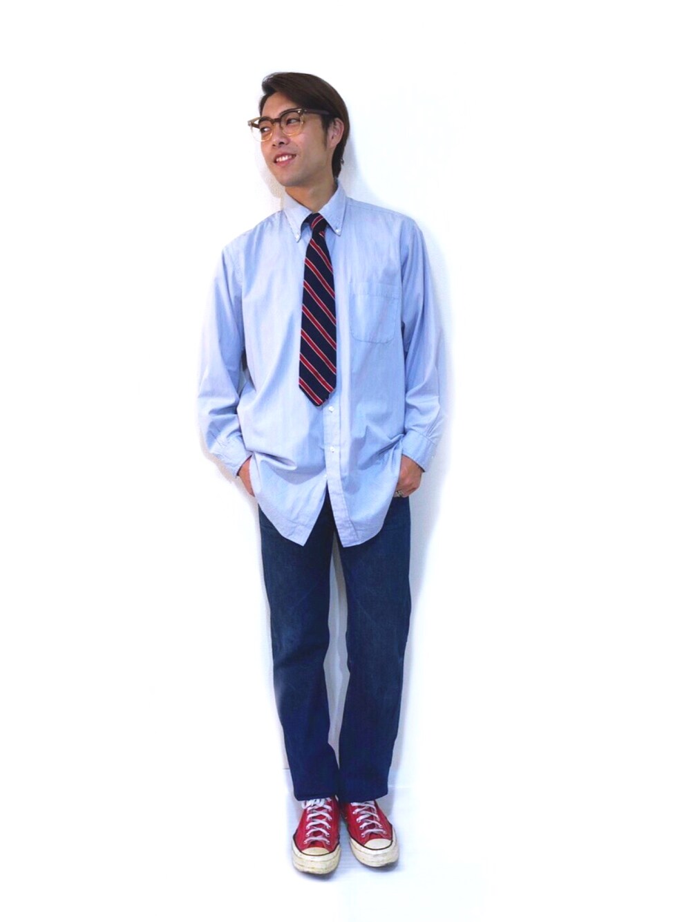 アメリカントラッドを配色で上手くまとめて見ました◎ ブルックスブラザーズのシャツはやっぱり襟の形がいいですね✨