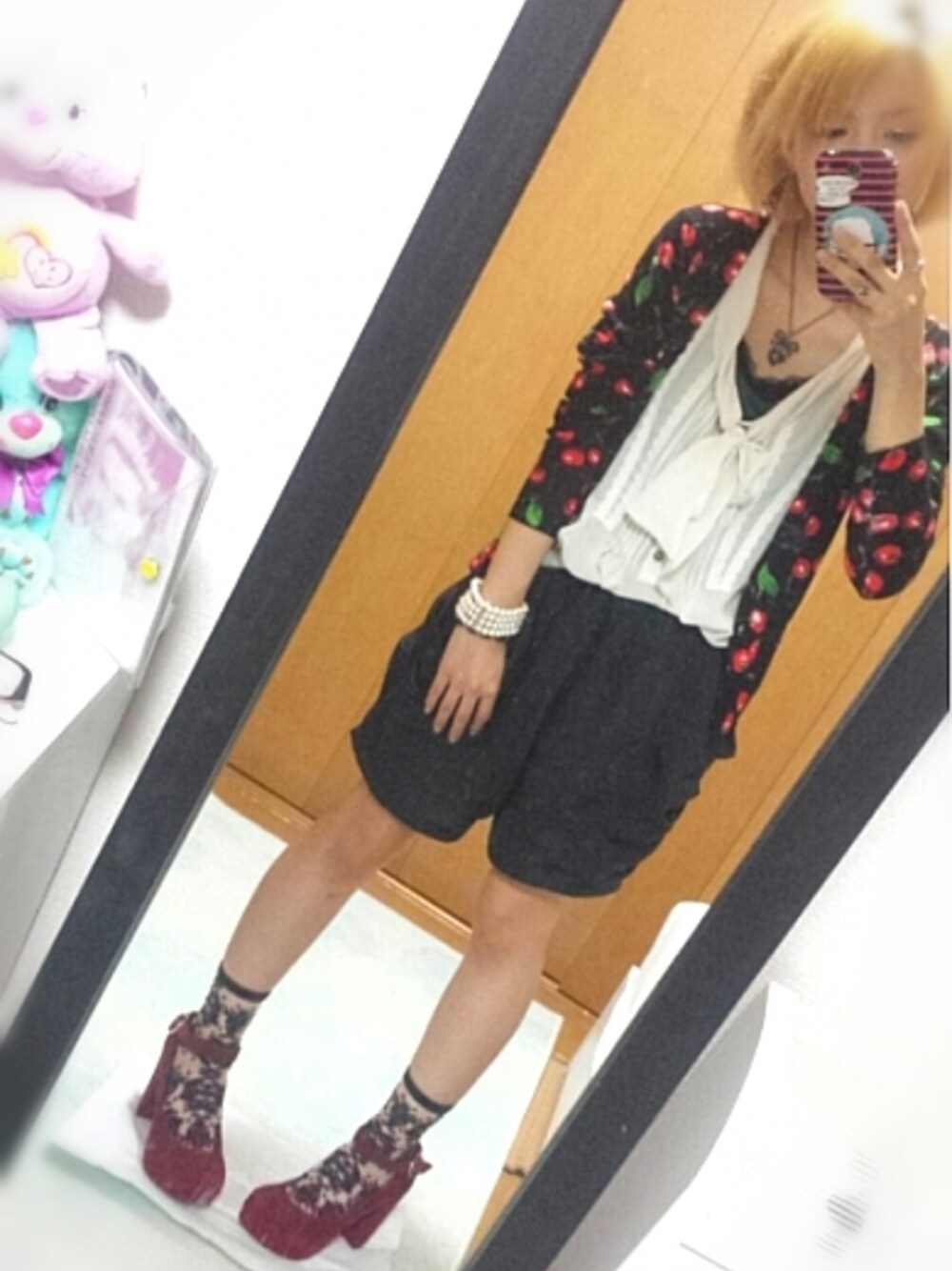 ちりこのカーディガン/ボレロ「さくらんぼカーディガン」を使ったコーディネート