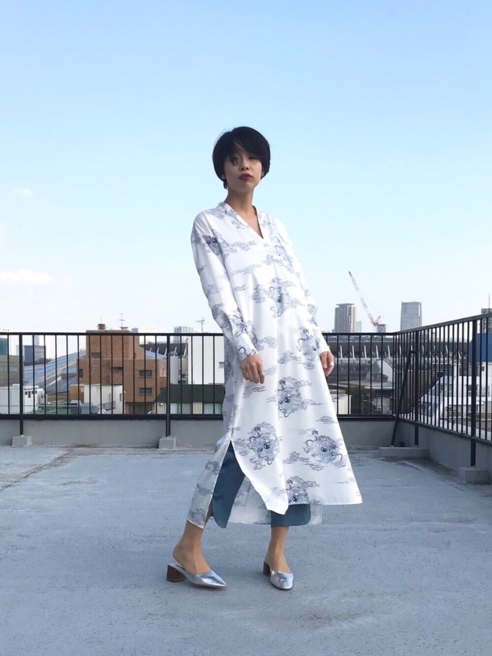 チャイナのトラディッショナルな雰囲気の柄と 白地に濃いネイビーの爽やかな色調が 気分を明るくしてくれる、 クールで軽快なワンピース。