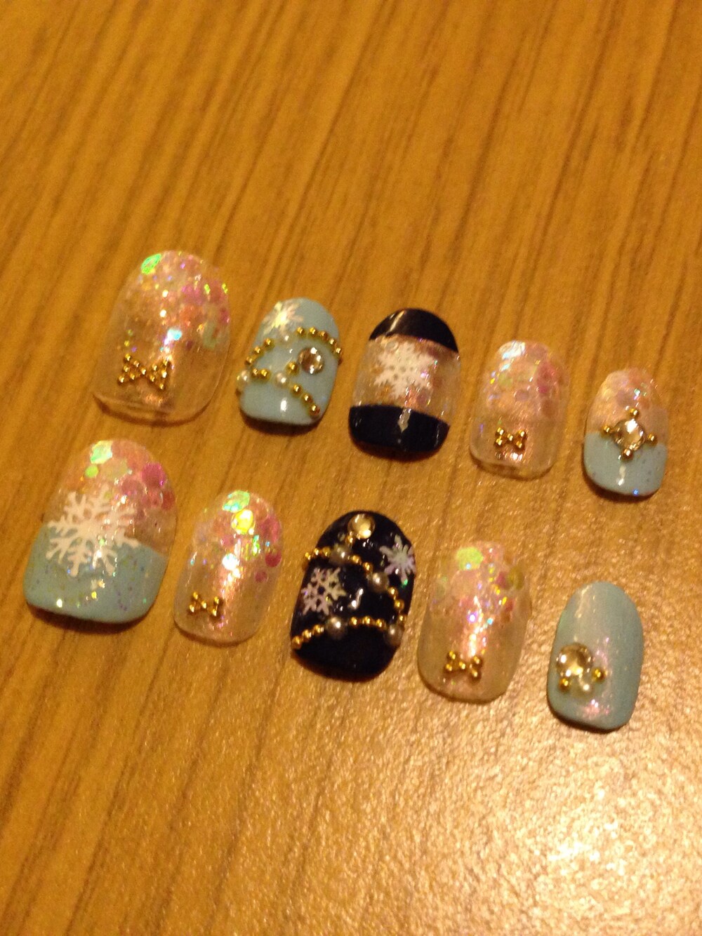 娘のネイルチップです♡ 私のと色違い( ^ω^ ) 小さすぎて心が折れそうになりましたが最後まで頑張りました(^_−)−☆ 結婚式にて装着♡
