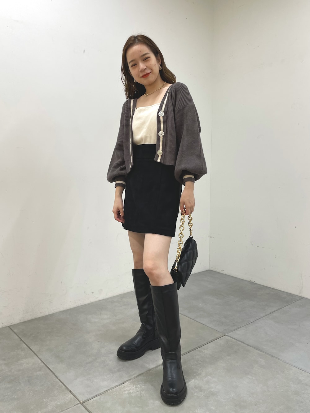 ゆず(W------room)のカーディガン/ボレロ「【カタログ掲載商品】Vラインショート丈2wayニットカーディガン」を使ったコーディネート
