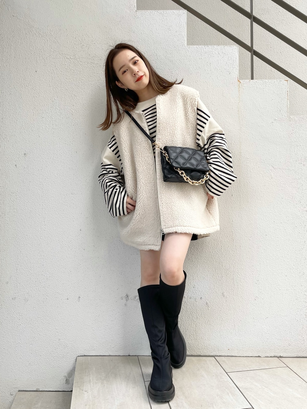 ゆず(W------room)のブーツ「ストレッチ厚底ロングブーツ」を使ったコーディネート