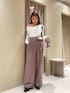 ほんのり肌見せできるトップスに スタイルアップできるスラックスを合わせたコーデ! ポーチ付きのベルトで 今っぽさとオシャレ感をプラスしました✨