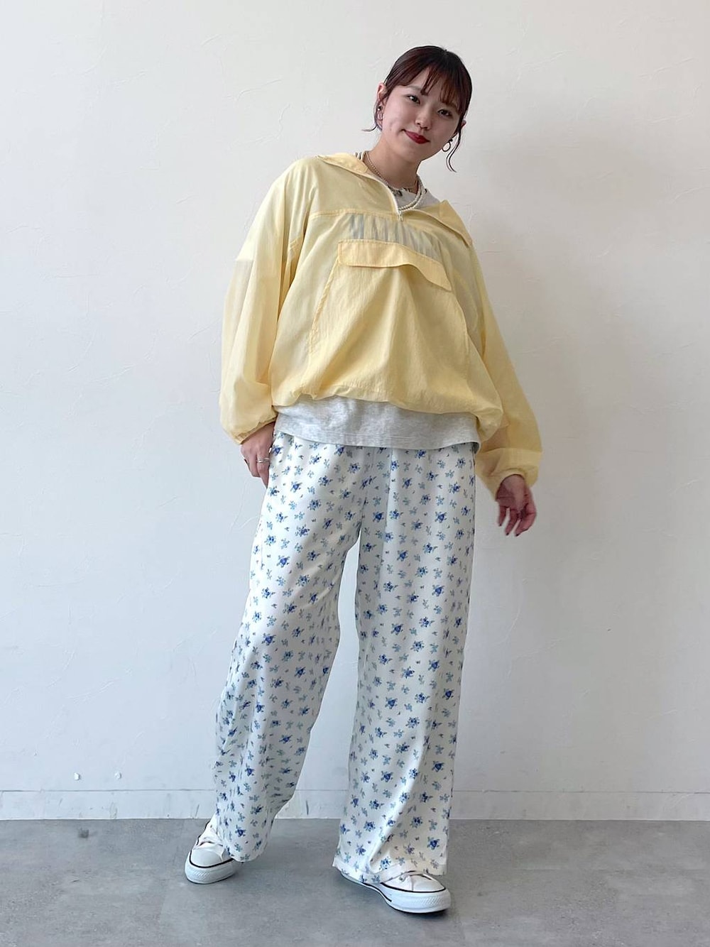 本日から予約スタートのCLIP BY STAFF🤝🏻 saitoさん企画のアノラック&Tシャツ着用しました~ アノラックはフリーサイズを着用してます🍯 シアー感が可愛くて これから暑くなる時期に1つは欲しいアイテム✨ ウエストがドロスと使用なので 調整して丈感楽しめるのも◎! Tシャツはブルーのロゴデザインが◎ どんなアイテムとも相性よく使えます!