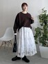 natural by clipの新作スカート☁️ 繊細なレースが目を引く一枚に。 わたしはプチフリーサイズを着用しています! 足元からブーツをチラ見せさせるのが可愛いですよ〜👏🏻
