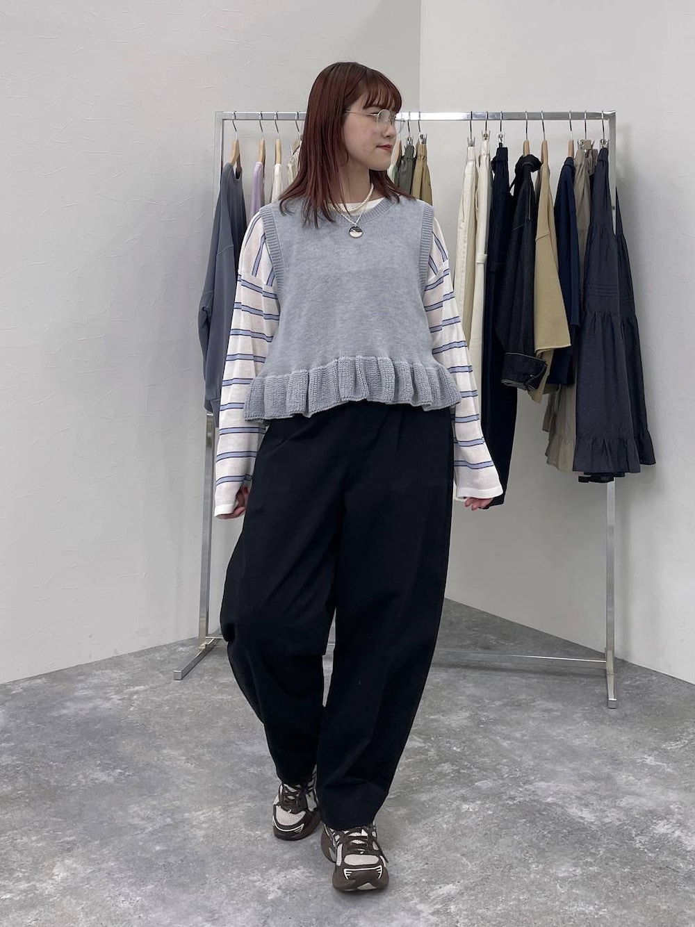 INSTA LIVE 紹介コーデ📺 オリジナルのコットンサテン素材を使用したパンツで 柔らかく滑らかな質感のアイテムです✨ ゆったりしてるけどダボダボしすぎず かなり着やすいアイテムに◎ ベストは前後2wayで使えて いつものコーデのプラスワンになりますよ~💭