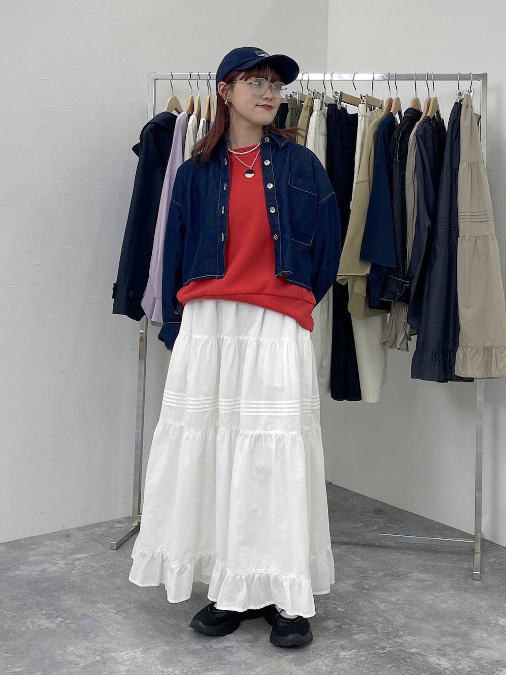 INSTALIVE紹介コーデ📺 ライブで大人気だったタックスカート💭 ヒラっと揺れるシルエットが 春感を増してくれてとても可愛いアイテムです! ポケットがついているのも嬉しいポイントに💞