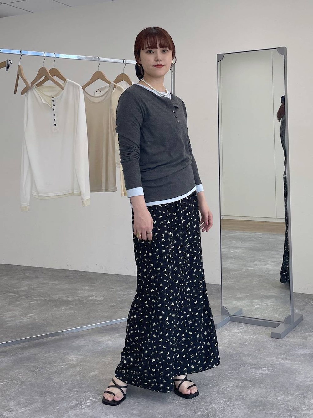 大人気のレイヤードトップスと 花柄が目を惹くスカートを合わせて 大人カジュアルなコーデにしてみました🌼