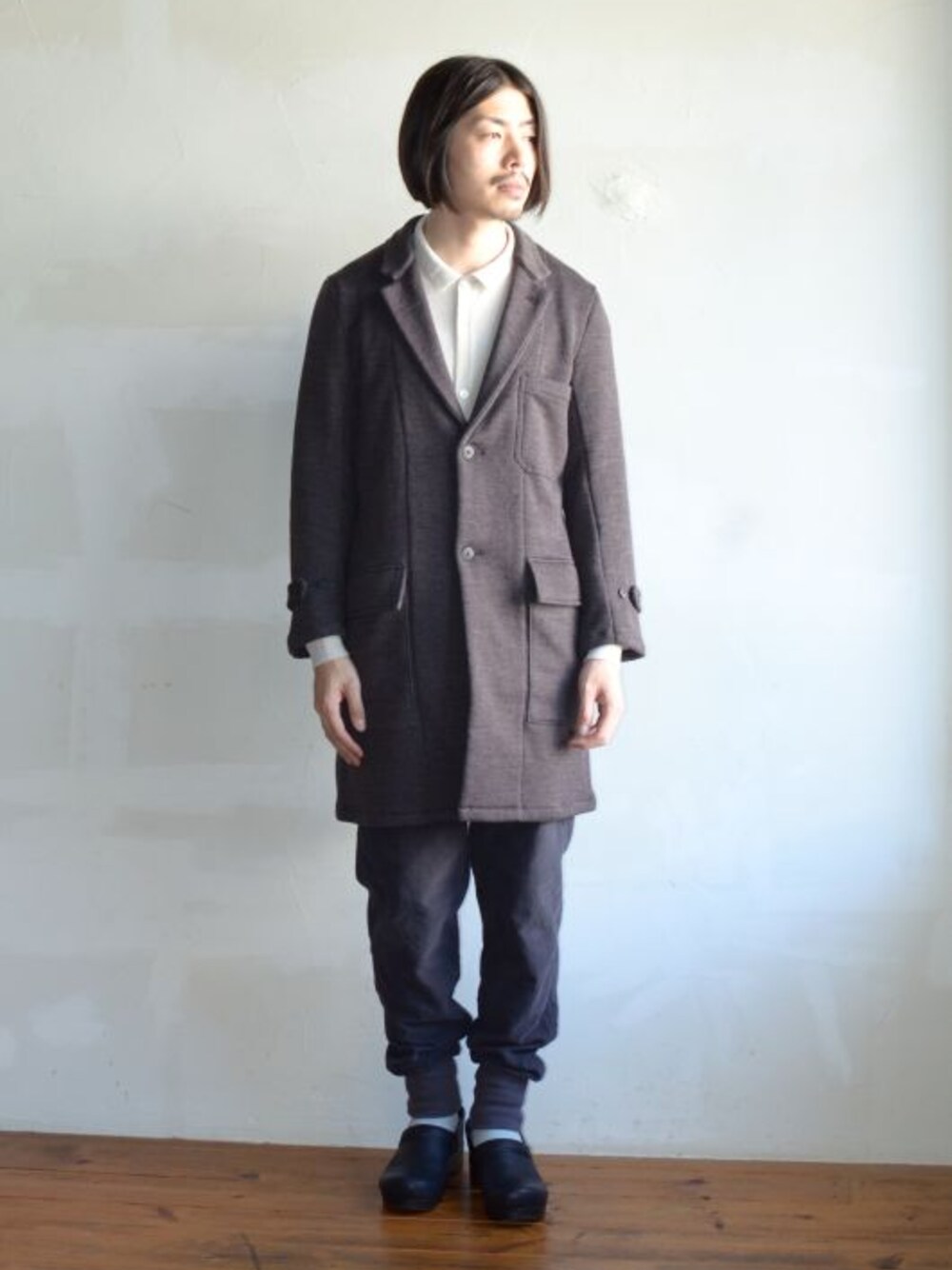 citylightsのチェスターコート「BLACK&BLUE (ブラックアンドブルー) 裏毛ショップコート 」を使ったコーディネート
