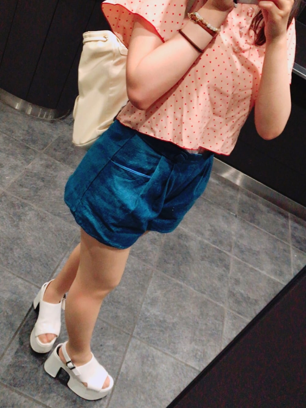 ♥の水玉。 盛モリ厚底11cm。 リュックはいつかのノベルティ。 …暑いね| Ꙭ)و゙