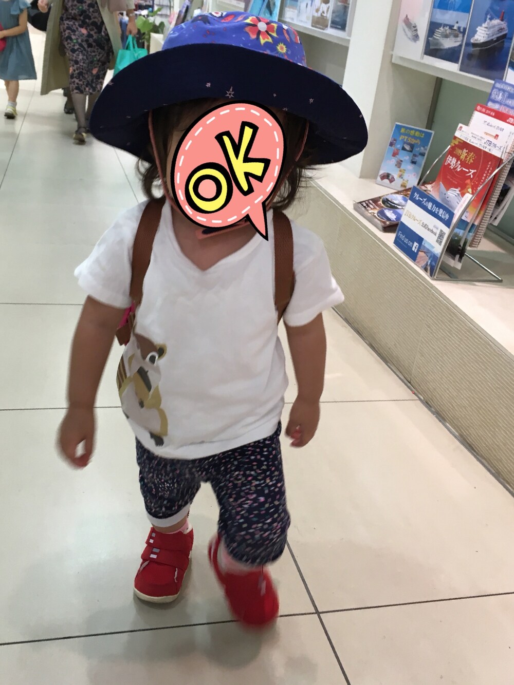 セールで狙っていた帽子ゲット!何やら娘のツボにはまったようで、その場で大喜びで着用し、帰宅まで手放さず。