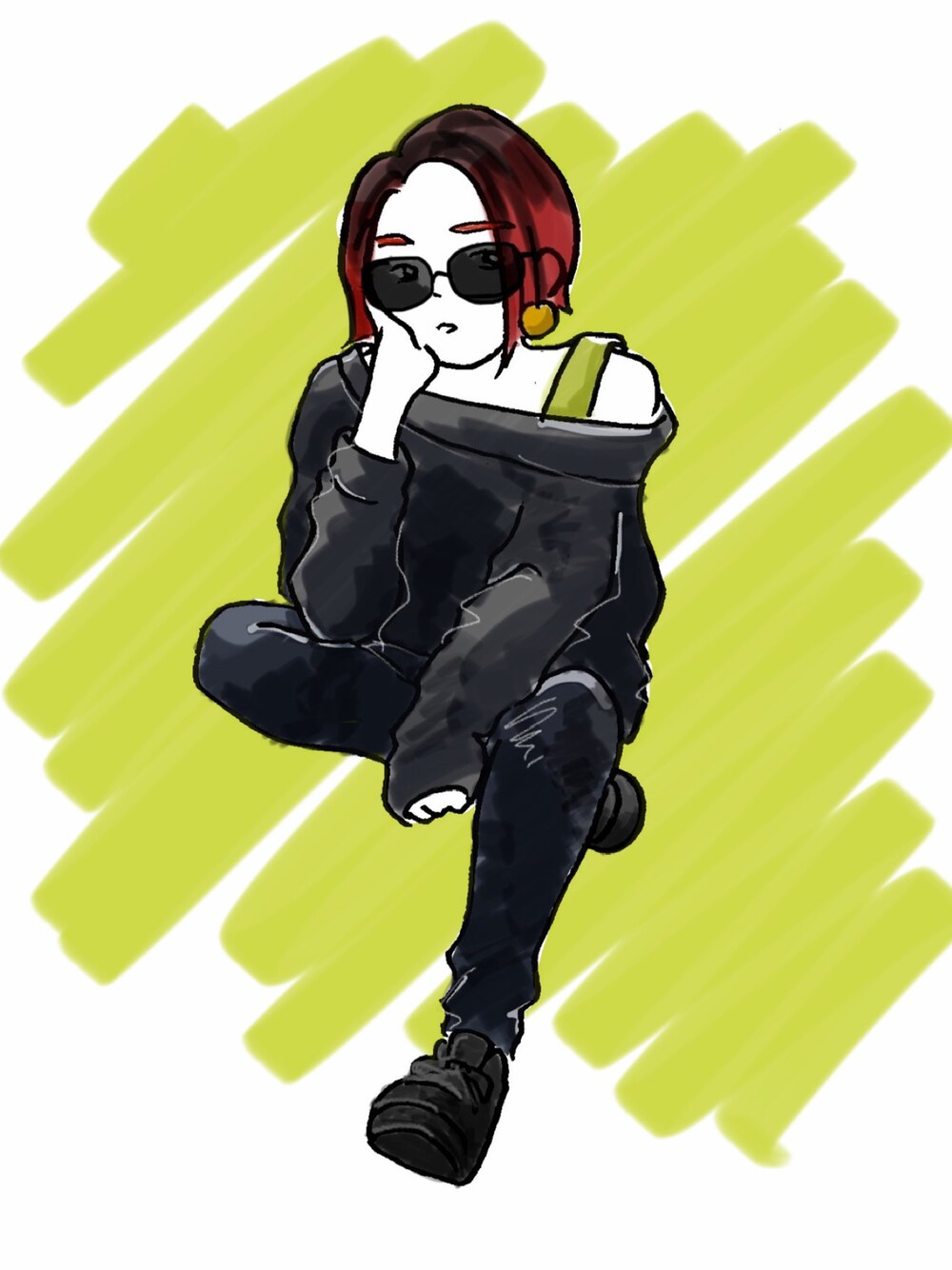 プチプラ三昧でも、オールブラックなら なんとなくそれっぽく見える不思議。 しかし顔が物足りないので 無理やりのサングラス🕶️ 髪を久しぶりにショートにしました✂️