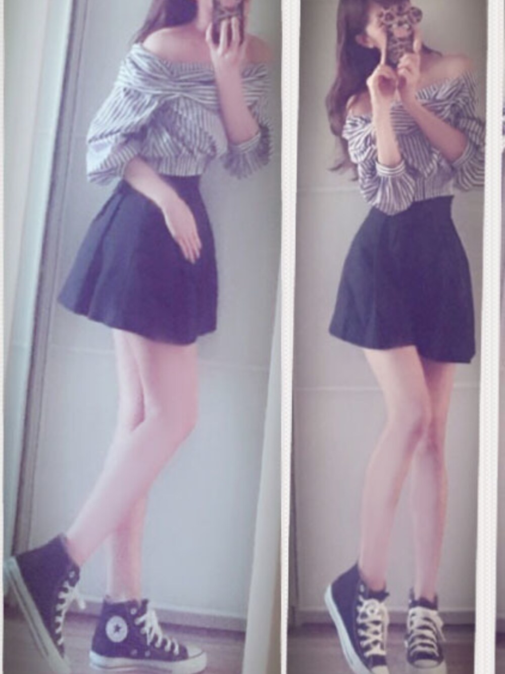 春 お外遊び(USJ ディズニー 森林浴 お花見)の時 着て行きたくなるようなコーデ♥ コンバースハイカットはスポーティコーデはもちろんだけど こういう女子なコーデにも合わせやすくて重宝しています。