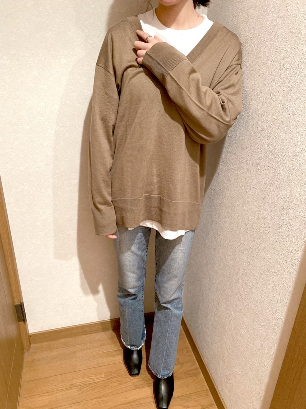 ckaaのニット/セーター「BCIコットンPL Vネックチュニックニット◆」を使ったコーディネート